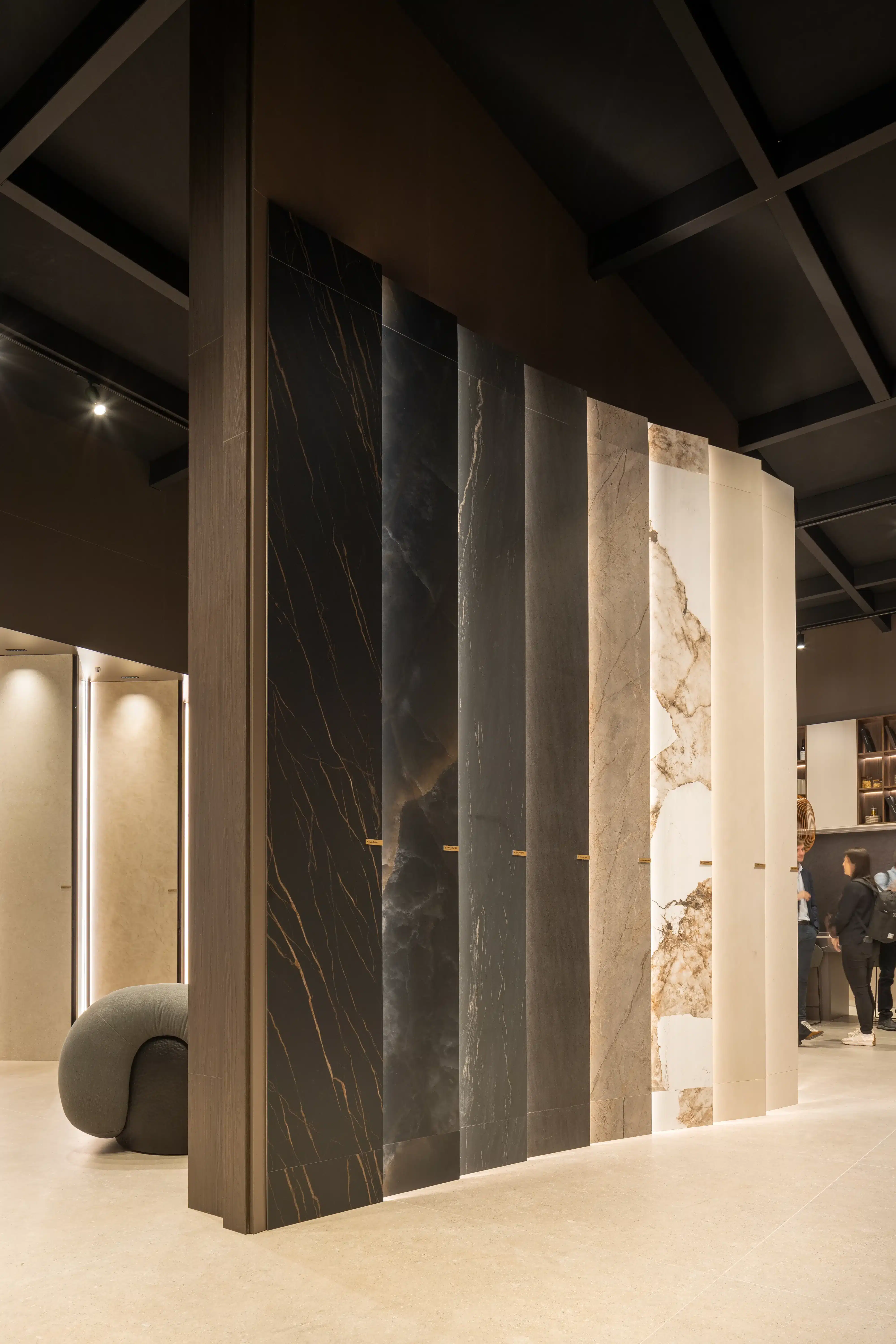 El stand de Ascale ha sido concebido como una experiencia arquitectónica donde el diseño y la materialidad se integran de forma natural. A través de volúmenes limpios, líneas verticales y una iluminación estratégica, se ha puesto en valor el potencial de las superficies técnicas aplicadas a proyectos contemporáneos.