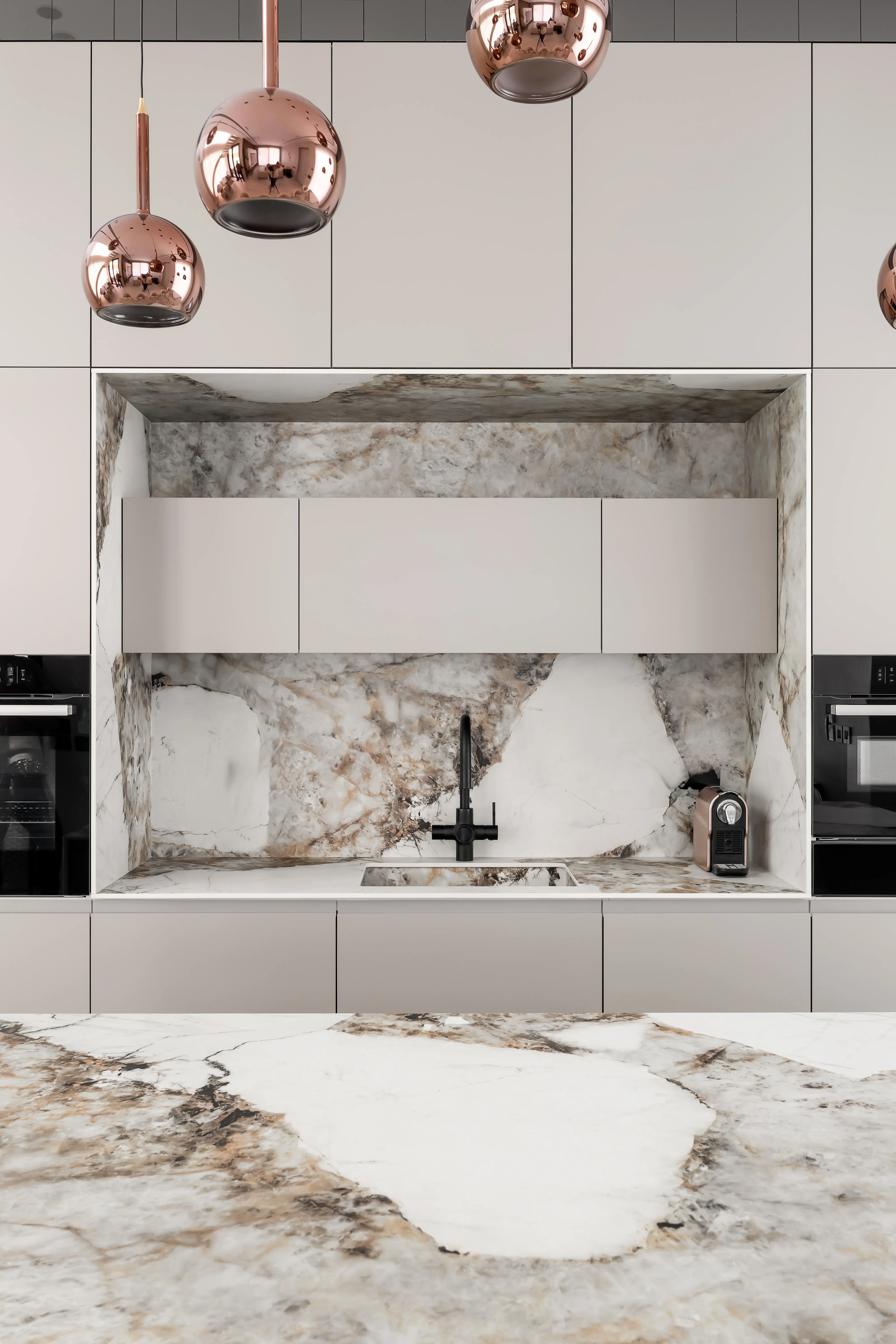 Кварцът, порцелановите повърхности и декоративните плочи с ефект мрамор са отлични алтернативи.