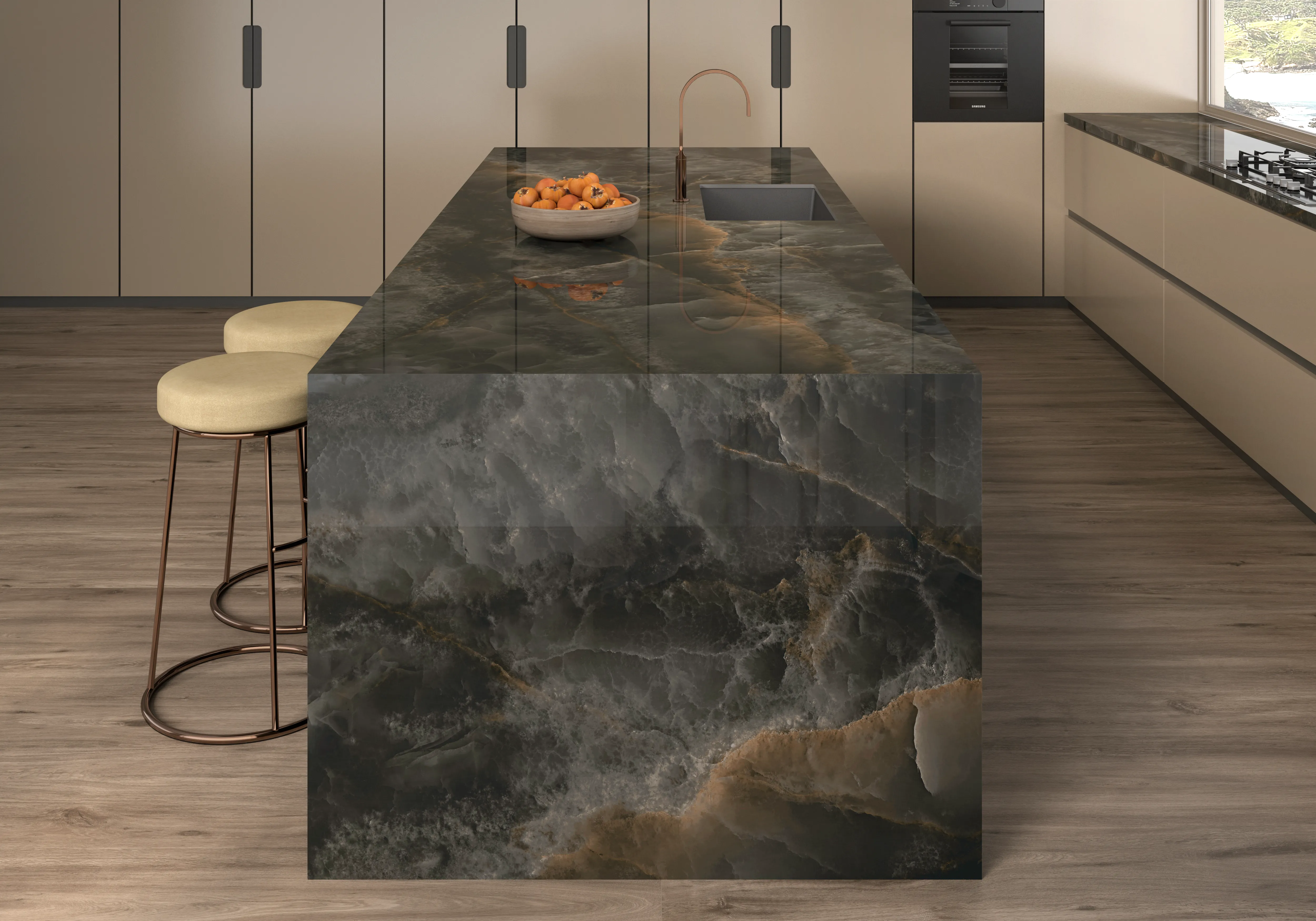 Dieses Gleichgewicht zwischen Dunkelheit und Glanz verleiht eine kontrollierte Dramatik, die jedes Ambiente aufwertet und es zu einer Aussage von zeitgenössischem Luxus macht. Inspiriert von den exklusivsten Formen des natürlichen Onyx verwandelt Onice Black Räume in zeitlos elegante Kulissen, in denen Design zur Kunst wird und jedes Detail Ausdruck von Exklusivität ist.