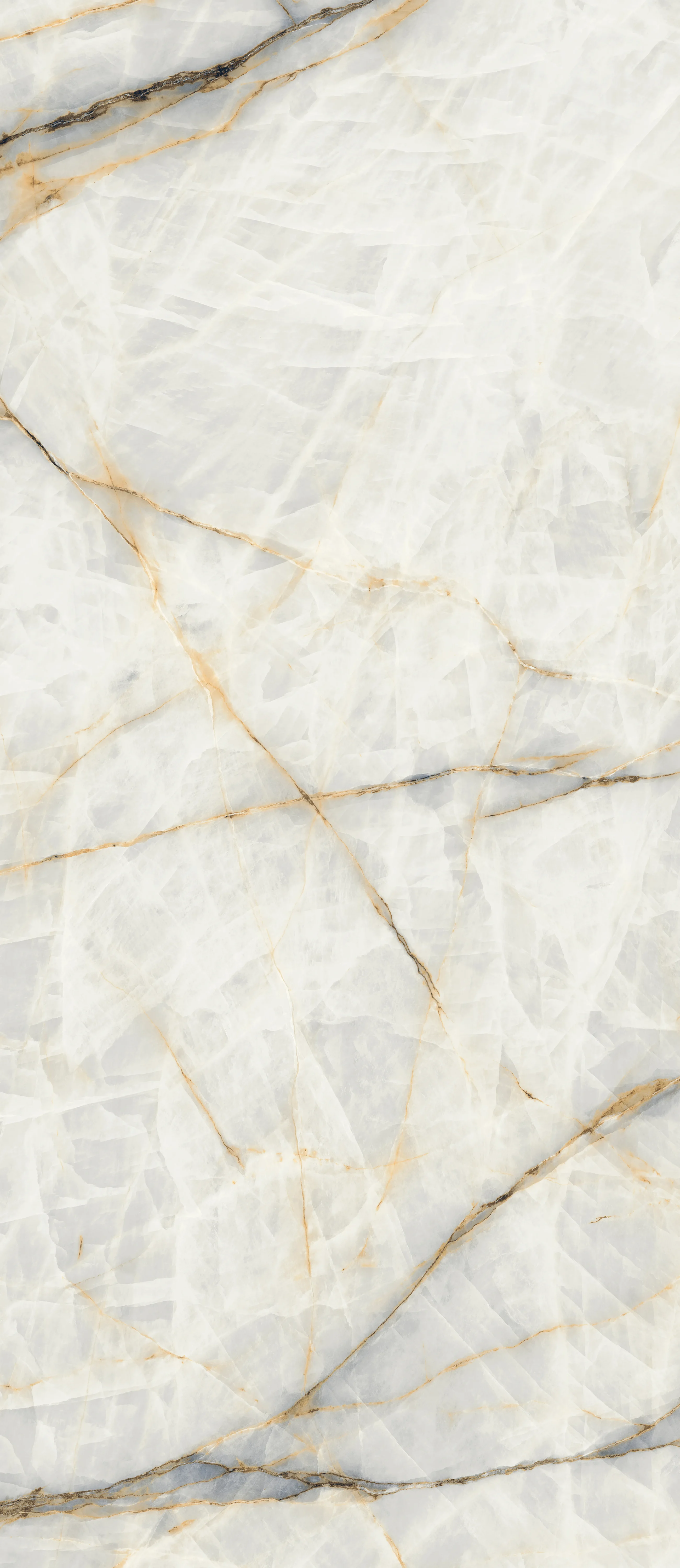 Aura Lux White is the art of nature captured in stone, a canvas that tells stories of light and movement. Inspired by the majesty of natural veins, its luminous background serves as a stage for the intricate drawings in ochre and gray tones that intertwine across the surface. Thus, every space is transformed, gaining depth and character that evoke the purest sophistication. The veins, like golden and smoky threads, not only decorate but guide the gaze, creating a visual texture that adds dynamism to any space.