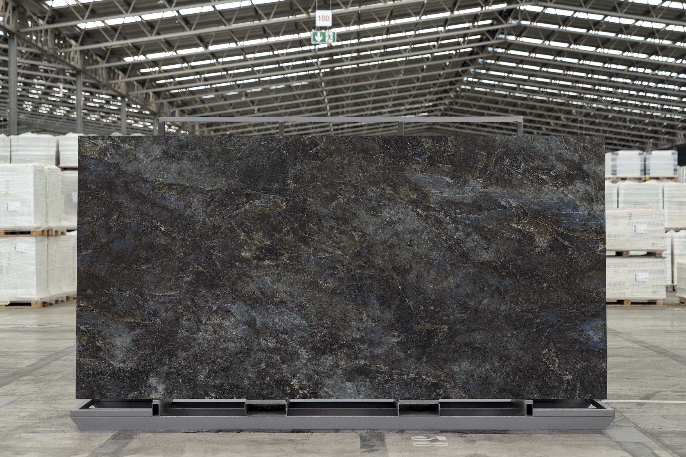 Inspired by the singular beauty of labradorite stone, found in remote regions of Canada and Finland, Labradorite captures the essence of a unique and enigmatic gem. Its surface displays striking visual depth, where intense dark blue backgrounds intertwine with brown veins, adding contrast, graphic richness, and an unexpected warmth.