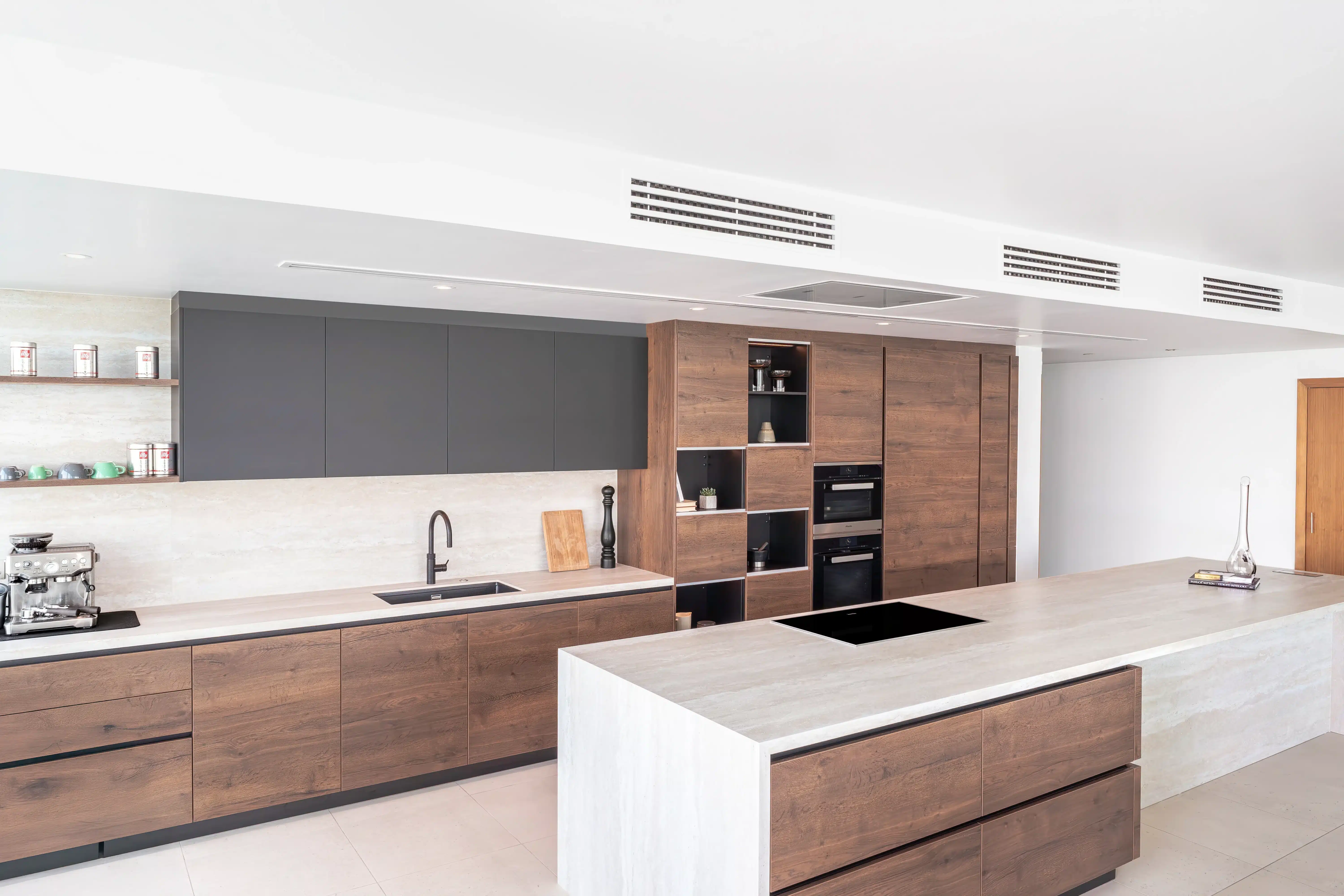 The result is a kitchen where every decision reflects a search for calm, coherence, and functionality. Tivoli White integrates as an essential element of the project, adding a sense of nobility and serenity to a space conceived for everyday use and unhurried enjoyment.
