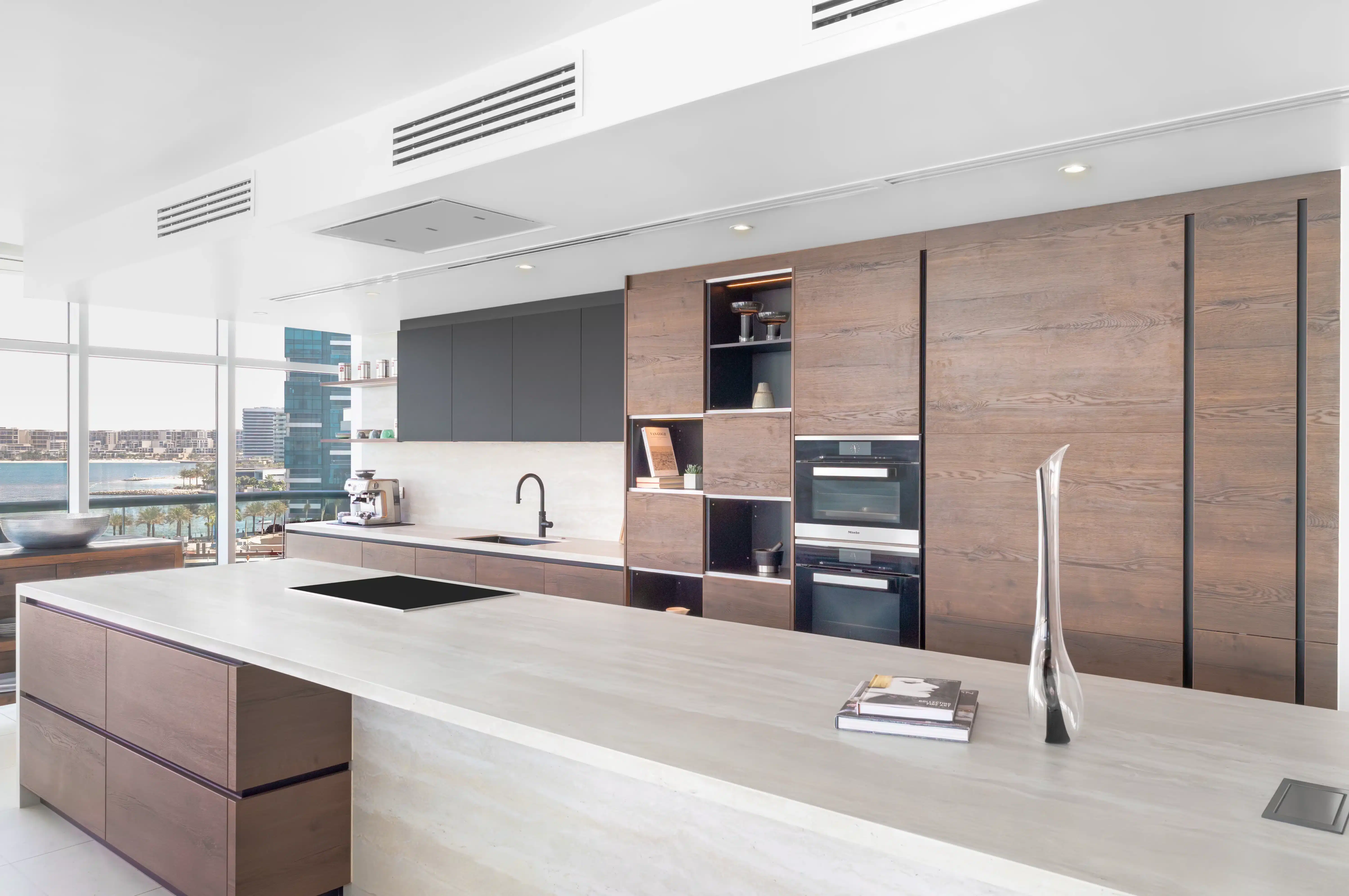 This kitchen project unfolds within a contemporary setting where light, materials, and proportions work in balance to create a serene and elegant space. The design embraces clean lines and an open layout, positioning the kitchen as a central area meant to be lived in naturally.