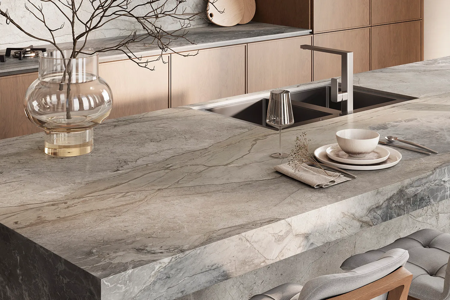 Inspirado en la fuerza de los mármoles de Bahía, Mystic Silver refleja la belleza de una piedra salvaje y exótica, apreciada en los proyectos más exclusivos. Sus vetas grises, profundas y dinámicas, se entrelazan con matices plateados, creando un juego de luz y sombra que aporta carácter y sofisticación a cualquier espacio.