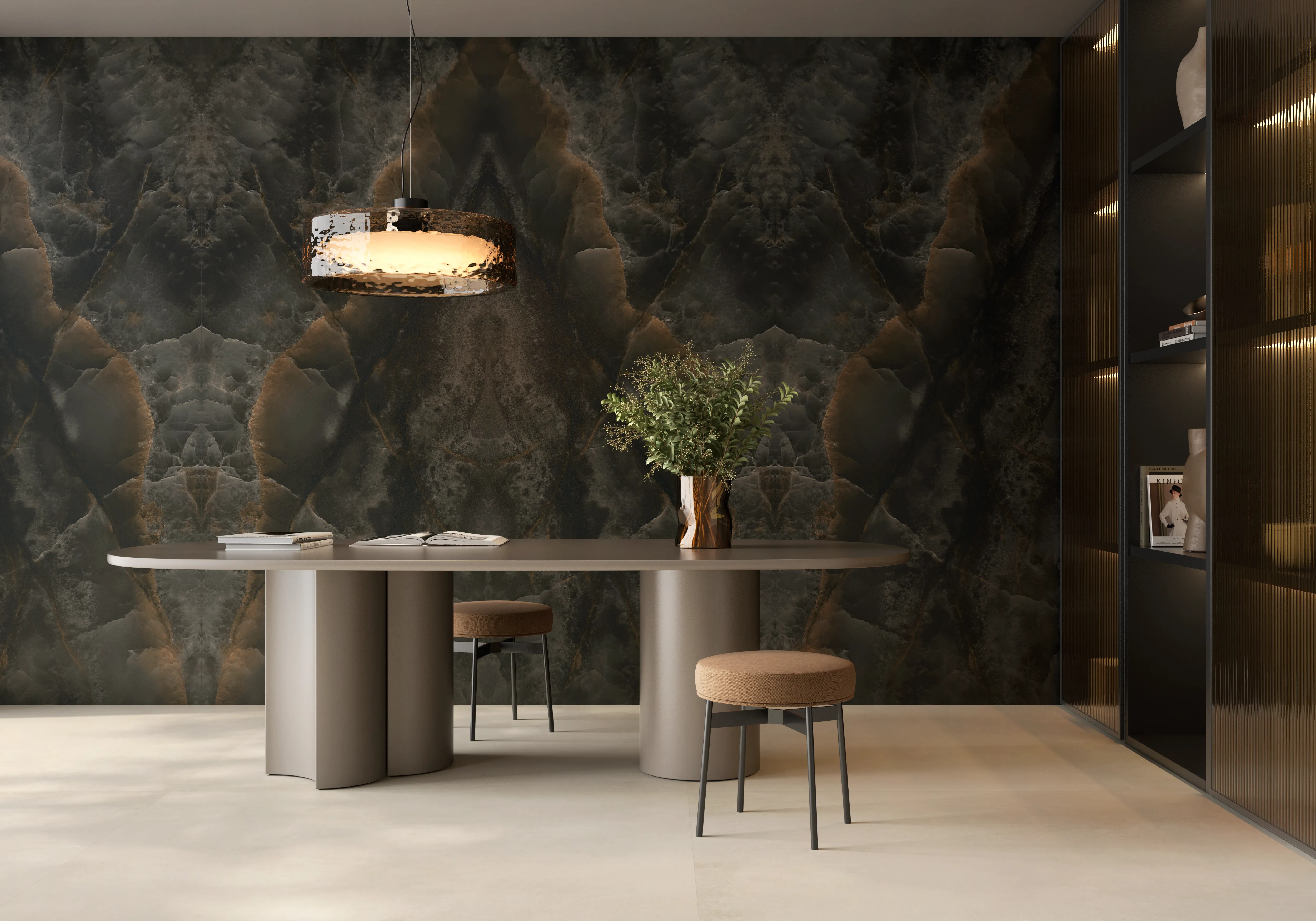 Cet équilibre entre obscurité et éclat apporte un drame maîtrisé qui sublime tout environnement, le transformant en une déclaration de luxe contemporain. Inspiré des formes les plus exclusives de l’onyx naturel, Onice Black transforme les espaces en décors d’une sophistication intemporelle, où le design devient art et chaque détail une expression de distinction.