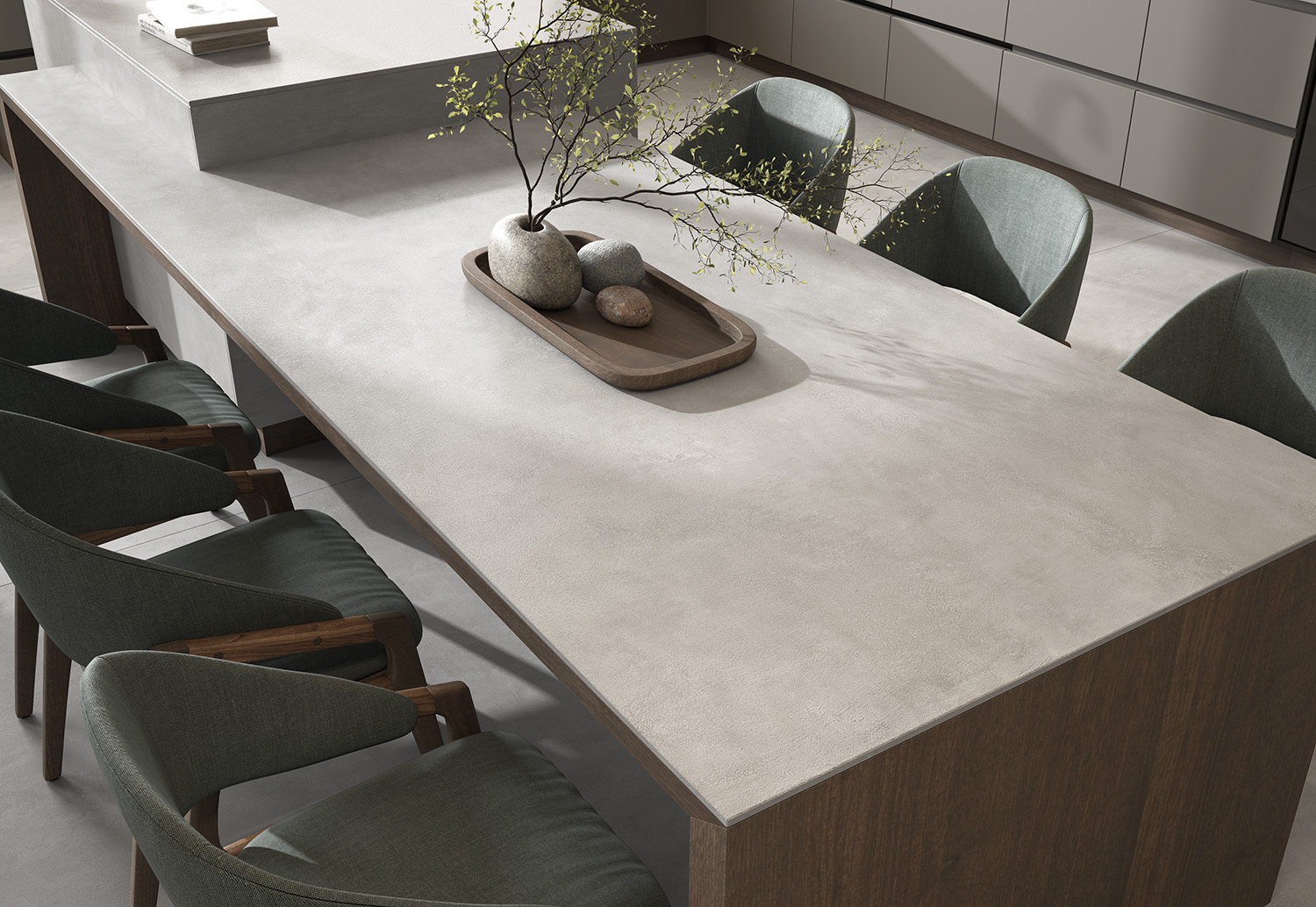 Cosmopolita Silver es una superficie de estética cementosa en tono gris claro que refleja las tendencias más actuales del diseño urbano e industrial. Este acabado aporta equilibrio visual y sobriedad, características muy valoradas por arquitectos e interioristas que buscan crear ambientes continuos y armónicos.
