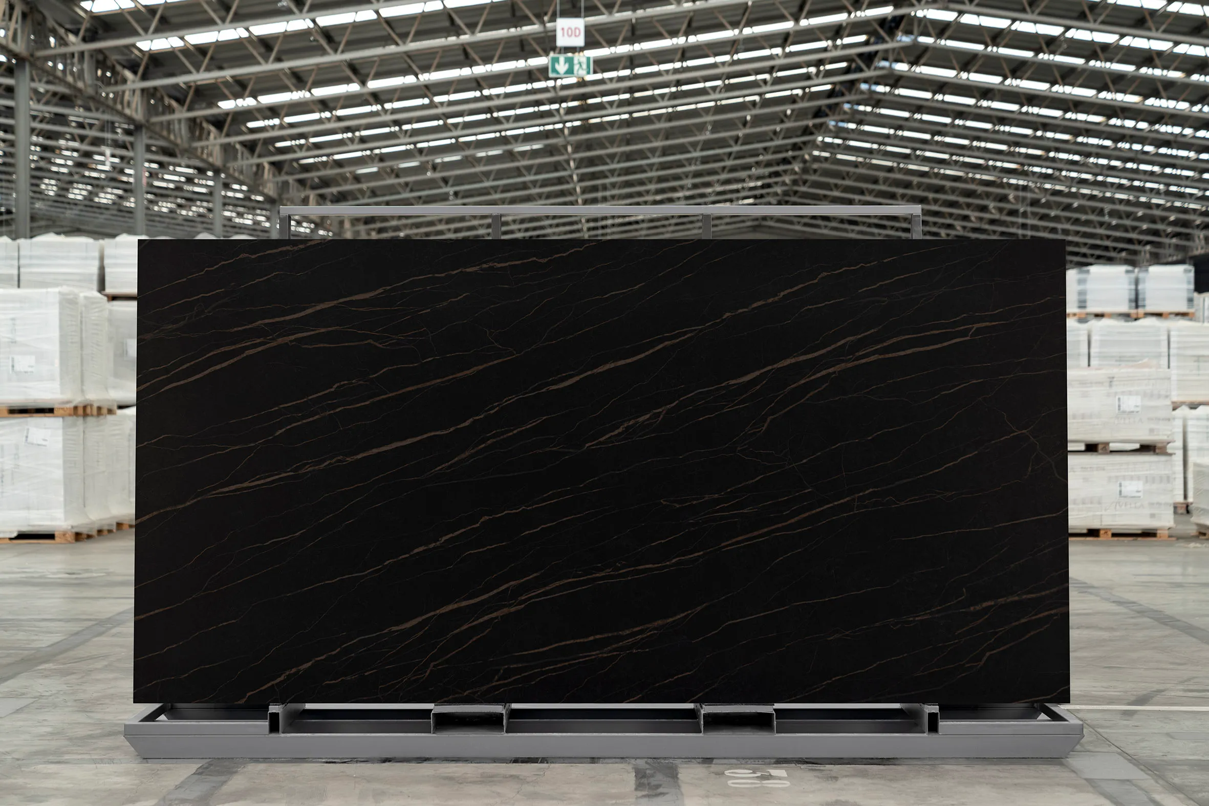 Para quienes buscan la fuerza visual del mármol negro con un enfoque audaz y contemporáneo, Laurent se presenta como una opción transgresora y sofisticada. Este modelo se caracteriza por un fondo oscuro profundo que contrasta con una vibrante red de venas anaranjadas, generando una composición de gran dramatismo visual y fuerte personalidad.