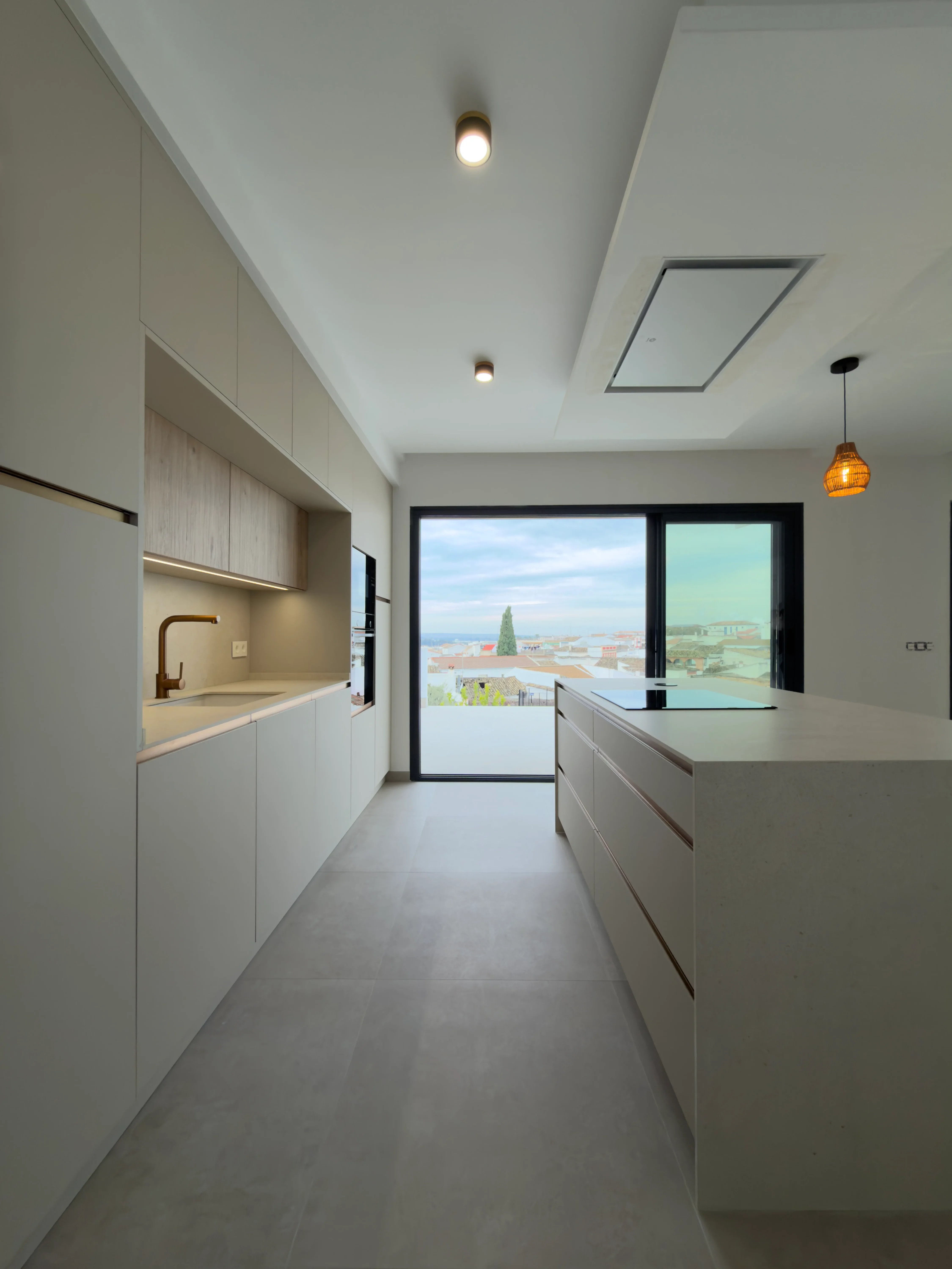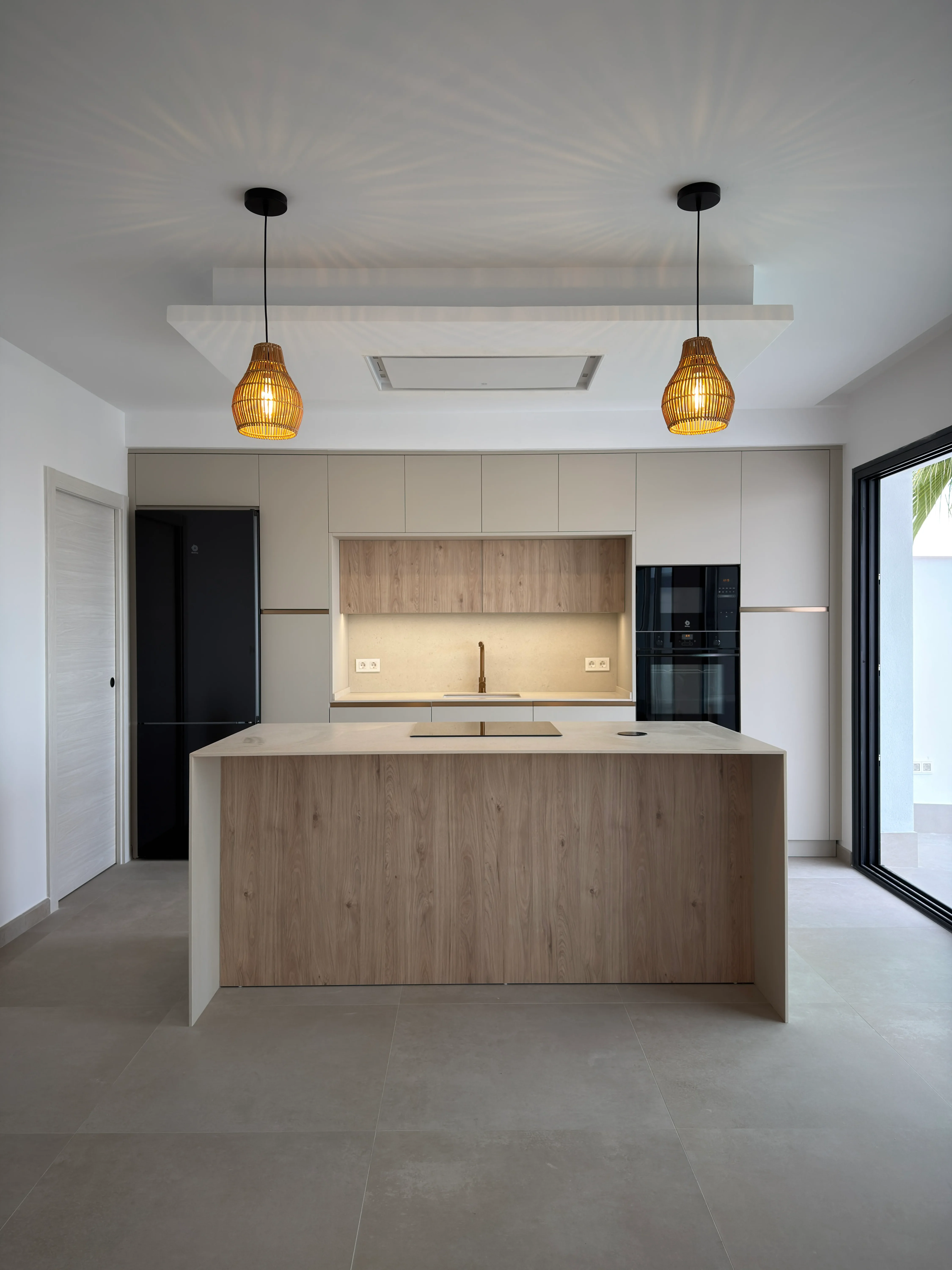 El resultado es una cocina de estética atemporal, donde el material aporta coherencia y calidez, creando