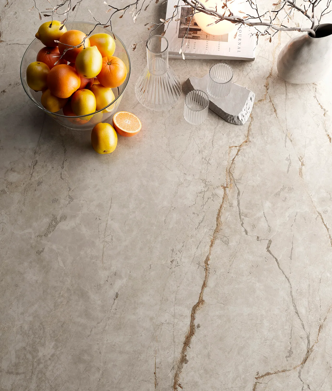 Appennino Gold 的灵感源自 意大利亚平宁山脉 的壮丽景致,在那里,群山的力量与山谷 的宁静相遇。其纹理与色调融合了深沉的红色调与细腻温暖的光泽,营造出一种自然的 存在感,为空间带来宁静与优雅。